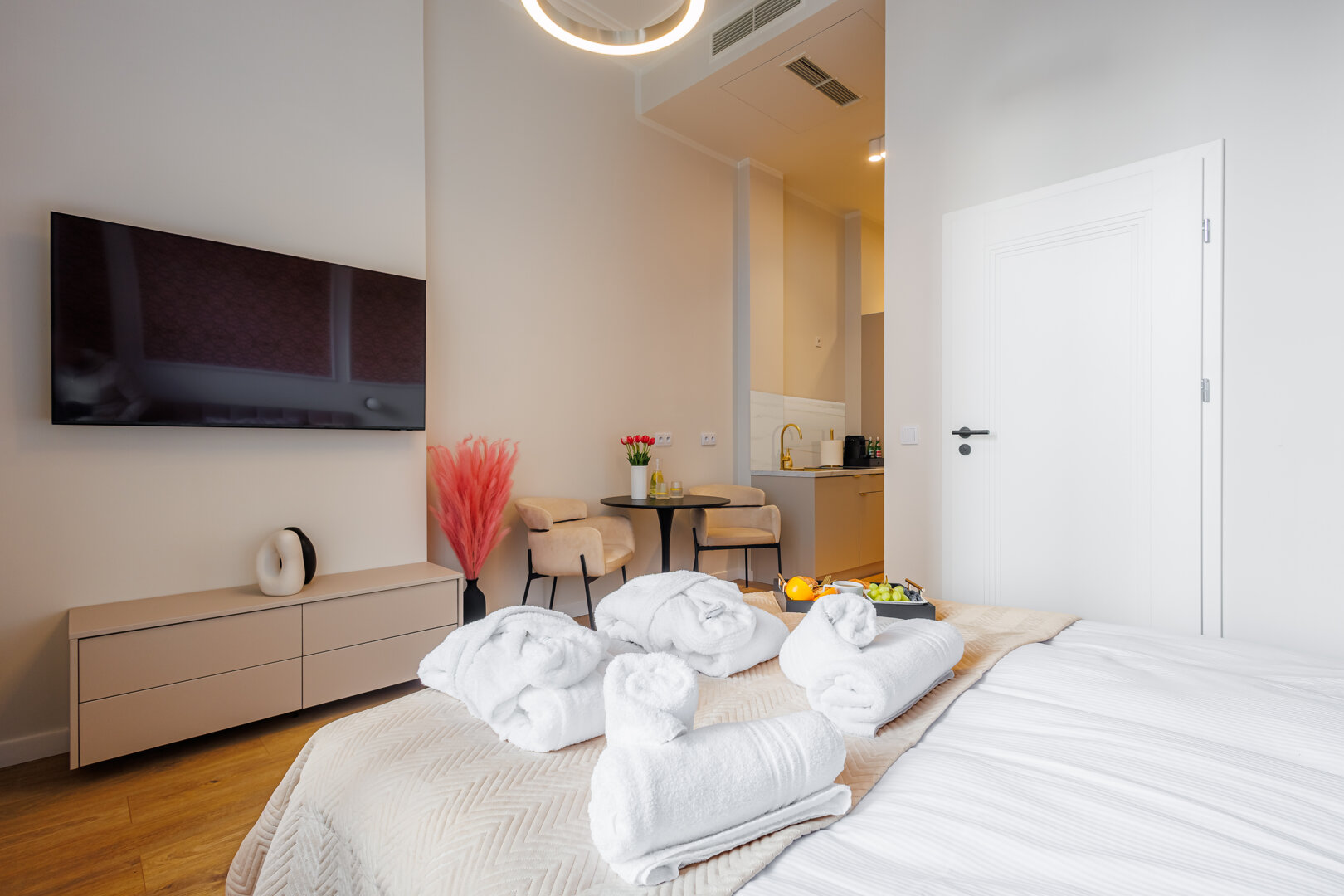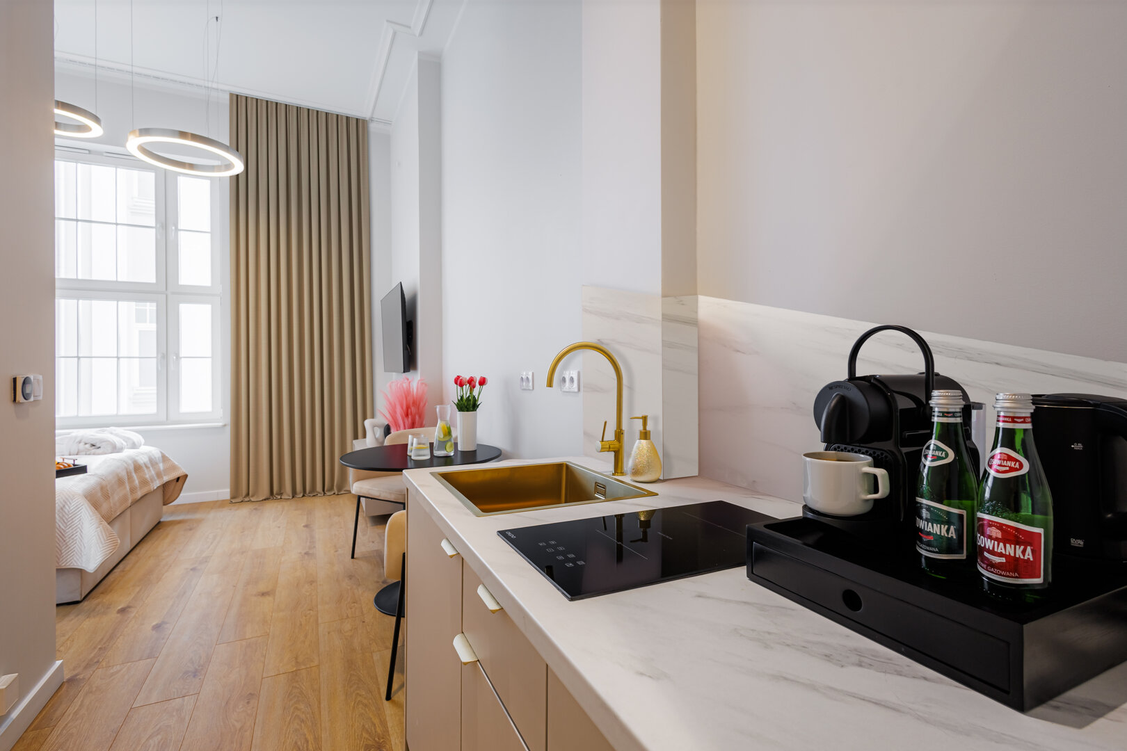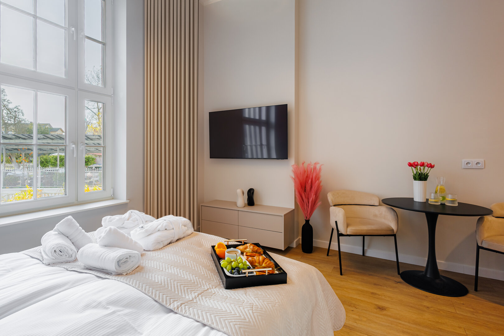 Studio dla 2 osób z aneksem kuchennym i sejfem. Bez balkonu i klimatyzacji. Możliwość dostawki.