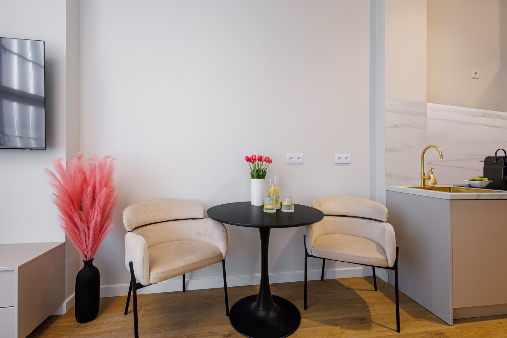 Przestronny apartament z balkonem, dla 2 osób. Jedna sypialnia i aneks kuchenny.