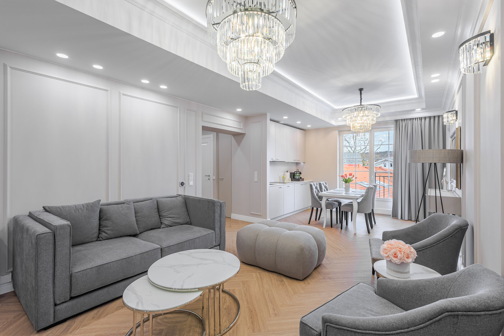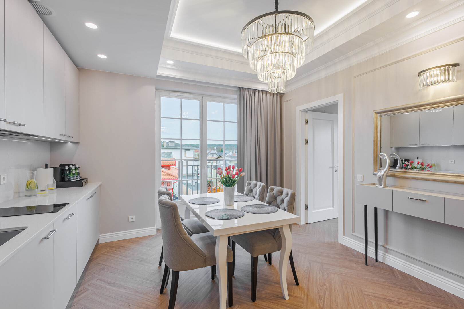 Przestronny apartament z balkonem, dla 5 osób. Dwie sypialnie, salon i aneks kuchenny.