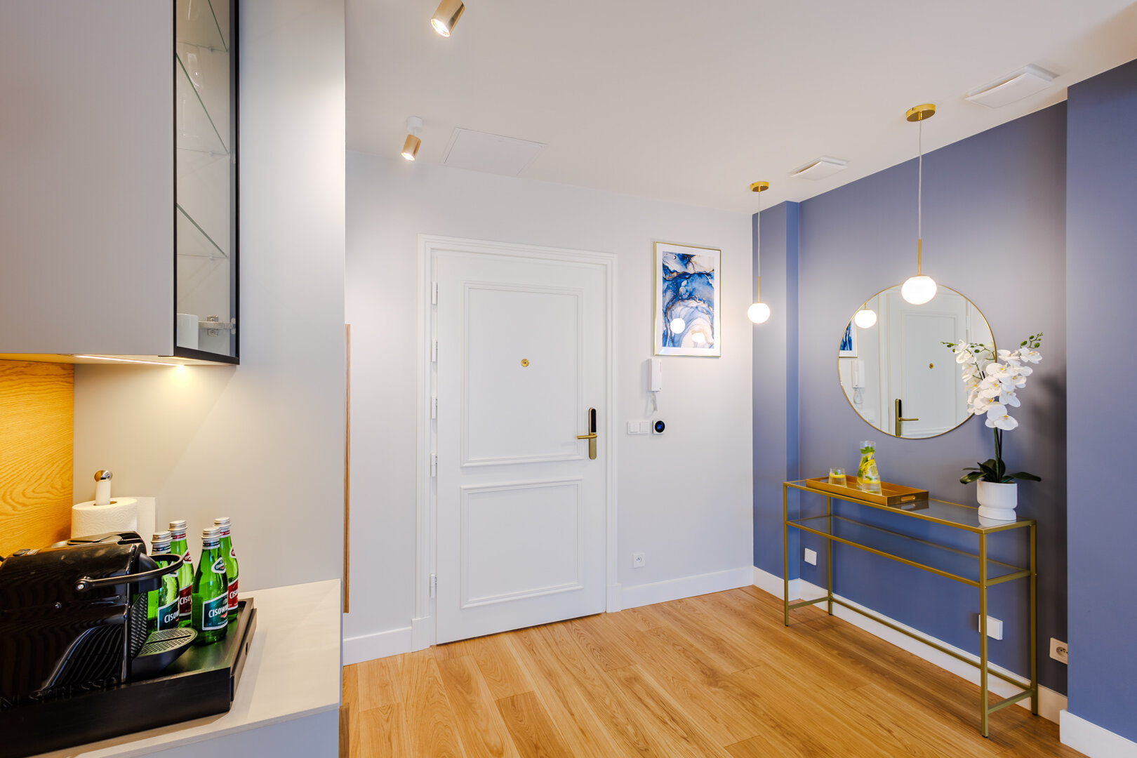 Przestronny, elegancki apartament łączący nowoczesny design z subtelnym klasycznym charakterem. Wnętrze obejmuje funkcjonalny aneks kuchenny, który pozwala na wygodne przygotowywanie posiłków. Do dyspozycji gości jest również łazienka z dużym prysznicem.